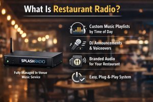 You spend a lot of time creating your restaurant to stand out and bring your visitors something unique, let’s turn down the TVs and Turn up your own Custom Created Radio Station. Your custom radio is mixed just for your restaurant, down to the very songs.
